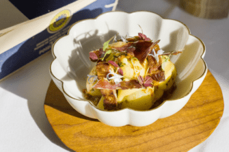 Nettoyez les pommes de terre et coupez-les en « éventail » : coupez des tranches fines dans la pomme de terre sans aller jusqu’au bout. Placez les pommes de terre dans un plat, ajoutez l’huile d’olive et une pincée de fleur de sel et enfournez pour environ 30-35 minutes, jusqu’à ce qu’elles soient bien dorées.